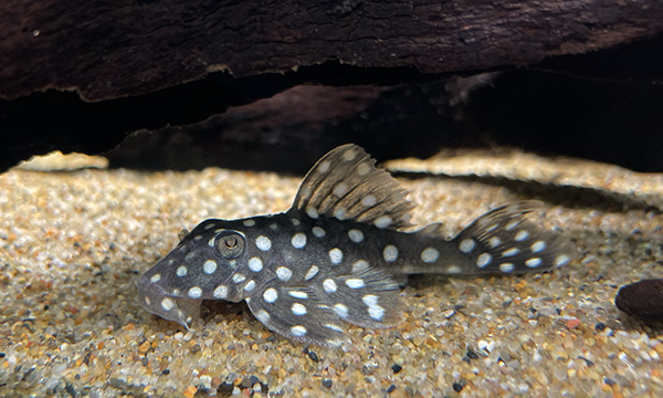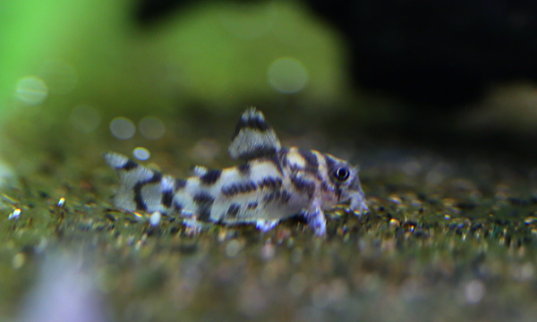 タパジョス上流域のちょっとレアなオトシンたちが来ています。まずこれはタイガージェットオトシン、過去何度か入手したことがあります。前回いつだったか忘れました。銀座時代に何度か、ここ10年ぐらいで1-2度程度です。体幅が細いオトシンで、色合いはご覧のように"モノクロ"です。状態良さそうで良く泳いでいますので、すぐのお渡しOKです。