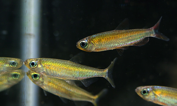 コンゴ便が来ると、コンゴテトラの仲間が複数種やって来てくれる。毎回種類とボリュームに差異はありますが、今便が来て1週間ちょっと、ほぼほぼ落ち着いていたので、あちらこちらを物色。触手が動いたコンゴテトラはこの種だった。名前がすごい、チェリーコンゴに「シャイニングブルー」の名を冠す。細身で巨大にはならなそう。スーパーチェリーとゴールデンとも明らかに異なりながら、その良いとこ取りな感じ。体型が細いのが気に入って、尾ビレの真ん中のエメラルドなメタリックラインもかなり印象的。こりゃ連れて帰って手元の水槽で見てみるしかないとなって、10尾のチョイスにかかる。オー10尾じゃ足りねぇーんじゃね、と思ったがとりあえず思いとどまる・・・。