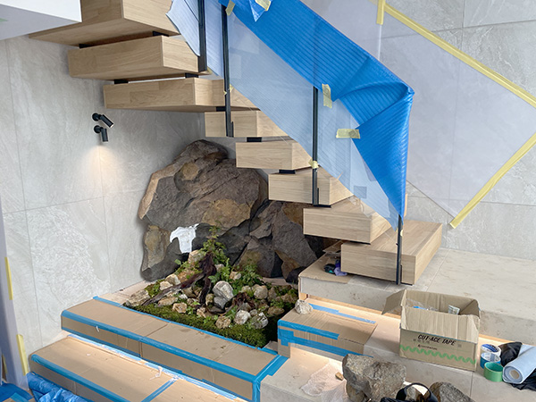 ここ数週間、店内でデザイン製作していた1300幅で奥行820の「渓流」を搬入。ダイワハウスの住宅展示場@突貫工事中。場所は下北沢だった。