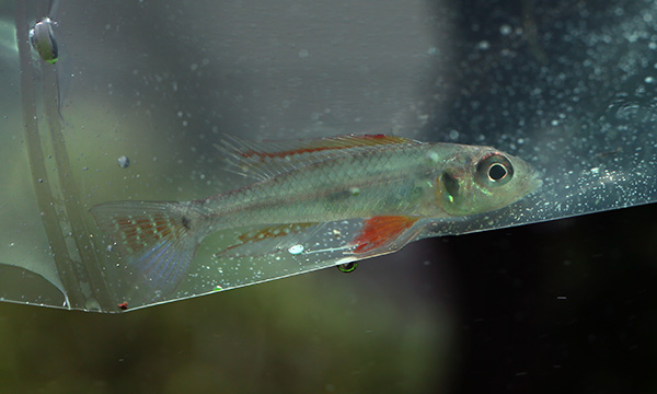 今回のカシラ、1尾のみ。約6cm。来たばかりですぐに他のコリと混ぜたくないので、ただいま虫下し作業中。