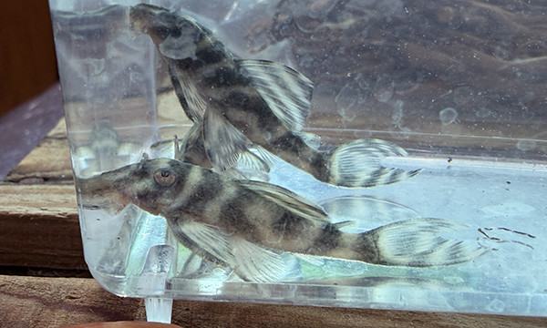 なつかしいプレコ。先月から見つけていてさぞかし高ーかな、と躊躇していました。何度仕入れに行っても売れ残ってて、ほしいヒトも誰もオランの過去の時代・・・。銀座時代に何度か入手した少しレアなプレコ、ワイルドかと聞いたらブリードだという。その分安かったけど、ニャムンダ産のこのさかなの存在すらしらんであろうと、今の時代の流れを予想した。売れないものを仕入れる理由は、ディスカス用のコケ取りにちょうどいいんじゃね!という想い。そうだ、うちの従業員になってもらえばいい。として連れて帰ってきた。模様は選んできましたよ。面食いなんで。ヘッケル90に2尾、テッフェグリーンに1尾収容したった。