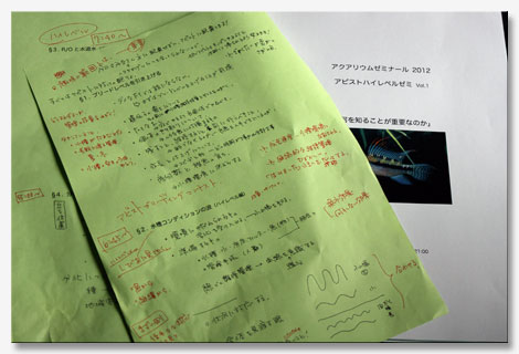 今回は2012年版の皮切りですので、ご質問の内容に制限はありません。日頃の疑問を思いの丈、お寄せください。アピストにまつわる内容であれば、なんでもお答えさせていただきます。今回は定員が70名ほどですので、すぐには埋まらないと思います。3/20のご都合がつきましたら、ここはぜひご参加ください。ご自分の質問と他のご参加者の質問で、日頃の悩みを一気に解決できます。特に初めてご参加なさる方や、始めて間もない方にとっても非常にオススメのアクアゼミです。