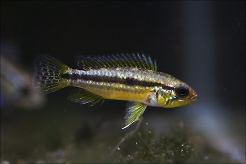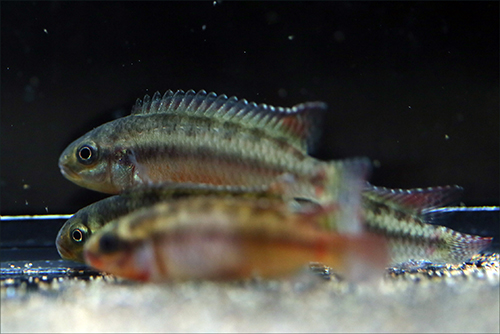 先の仔取りまでアタマの中にあるのであれば、♀次第ということになります。見て買うのが当然ベスト。それを確認しながらのチョイス、つまりは数ある中から自分の見立てで選べることがなによりなのです。通常雌雄サイズ差が多かれ少なかれありますので、導入直後はペアというより単なる2尾のアピストですね。互いのやりとりや衝突の中で「同種である認識」と「同種のカウンターパート(相方)」であることを、それぞれが認識するまでにタイムラグが生じるのも現実のことです。水槽の空きがない場合には、購入を控えるか、1尾ずつむかえ収容しておくか、"当て"のさかなが多いところに放り込むことになるでしょう。サテライトや産卵箱、もしくは別水槽を1本あてがうのか、新規の水槽に導入するのか今結果が出ている水槽のサカナをどかして新規を受け入れるのか。その答えは明確で、「どかして入れる!!」のがベストであります。飼育実績は、その水槽コンディションの推移を物語り、同水質のサカナであればスムーズな導入とその水槽へのその後の馴染み具合までも保証してくれているのです。新規のサカナを新規の水槽に迎え入れることが一番やばいこと。安くはない出費をレジ前で、もしくはATMの前で、配達に来たヤマトのドライバーの前で行い、それを新たな不安ともなう水槽コンディションの中に放り込む行為は、高額な特攻隊としてその水槽を立ち上げる要員を準備していることと同値であります。したがって、やはり新規のサカナたちは、これまで維持してきている実績ある水槽へ、新たな住人として迎え入れるのがやはりベストなのです。"弱者への最大なる配慮"、これがなによりの近道で、かつ基本となります。