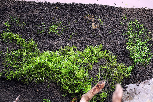 「2013水草展」に出かけていたあの「90cm水槽」から、シート状にパールグラスをはがして持ち込んでおります。なんとソイルつきで、今後のスムーズな展開を想定しながら上手にはがしとってきています。ということで、すでにお店の90は見る影無しです(泪)。今後しばらくは、ここのサンシャイン水族館の「アマゾン展」にて展開し活躍してくれるはずです。そのほか、グロッソスティグマとNewラージパールもシート状のままで、この水槽にしっかり移行されています。