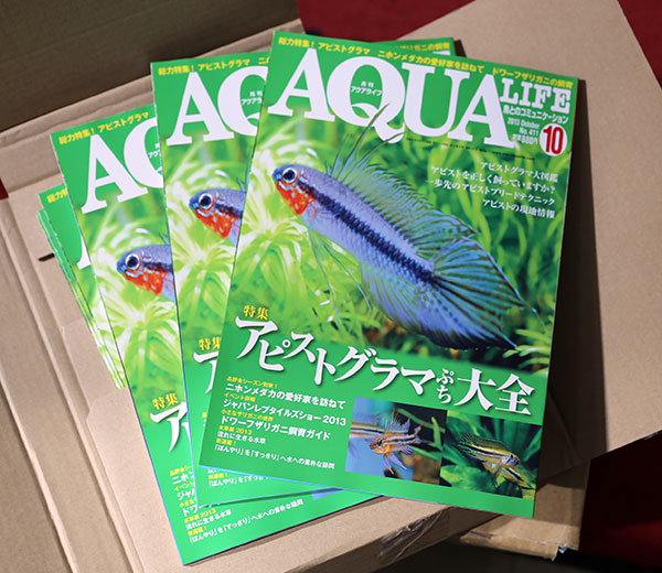 昨年ネタより、かなり色彩が豊かです。とは言え、かなり地味な部類。今号のアピスト特集のアクアライフの中で、連載している「ドワシク通信」のページでは「cf. taeniata "Rio Tapajos"」をちょうど紹介しております。地味といわれるカエティ&コンブラエ系の小型アピストの一種です。属に言う売れないアピスト。ただ、熱烈ファンが全国極少数存在しているのも事実。名前と現地画像だけでさっそく1ペア確保の指令が来ていますし。自分だけのアピストの楽しみ、そんなのがあってもいいのでしょう。