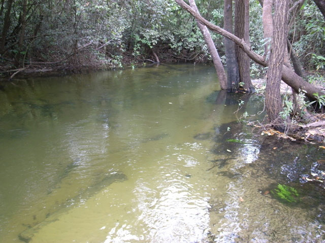 右の岸辺は角度がきつく、アピスト用の落ち葉は水に流されてゆく。まだ水位が高くもう少し水位が落ち水流が緩まっている場所があれば、そこに落ち葉がたまりアピストもいる。採集は時期的にもまだ早かった、そう結論づけられよう。ただ、わざわざ行っている。手ぶらで帰るわけにはゆかず、やはり気ばかりあせってくることと思われる。