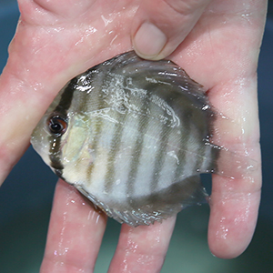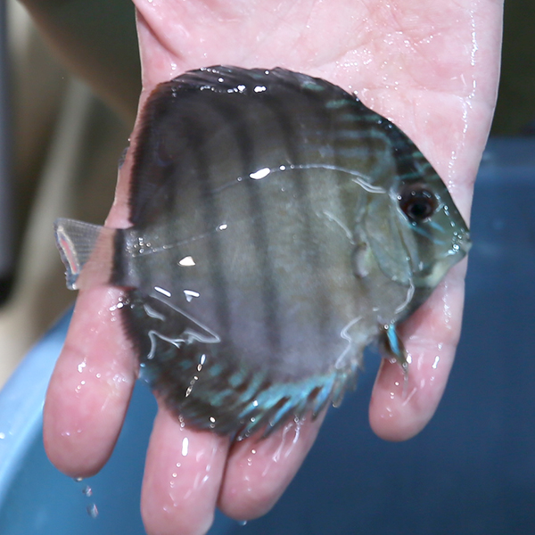 次は7〜8cm、チビ目のワイルドを入手してきました。45もしくは60cmでワイルドディスカスを楽しみたい、そんなことを構想している方向けにご用意しました。単価的に水槽サイズ的にもうってつけです。水質さして気にせず、基本的にこれは弱酸性でOKです。