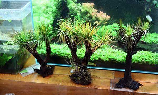 プラで出来てる置物か!!ってのが第一印象。ところが触ると柔らかい、ホンモノっぽい、ってのが素人的第一印象。聞くとカヤツリグサだってのが、見た目と合致しない。日本初入荷の植物だそうだ。値段聞いたらおっ高い!!。そこで仕入れを敢行した流れ。